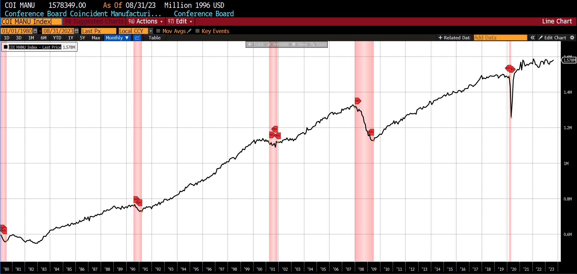 There remains the distinct possibility that Friedmanโs โlong and variable lagsโ are much longer and more variable than expected. The polls and surveys upon which so many data series rely may have tipped into ineffectuality. It may well be that accurate means of measuring aspects of the post-COVID US economy require the identification of new variables or the determination of new or improved sources of statistics and information. As social scientists, we remain alert for and open to cogent, economically sound and well-reasoned hypotheses pertaining to the current state of the economy. Presently, though, our expectation of a US recession on or before August 2024 remains undeterred.