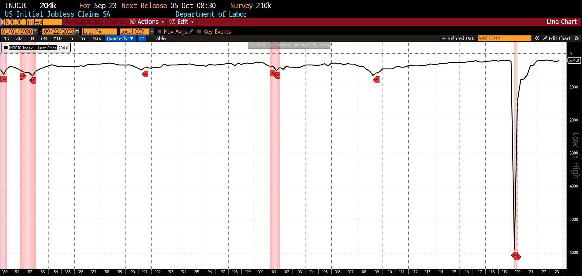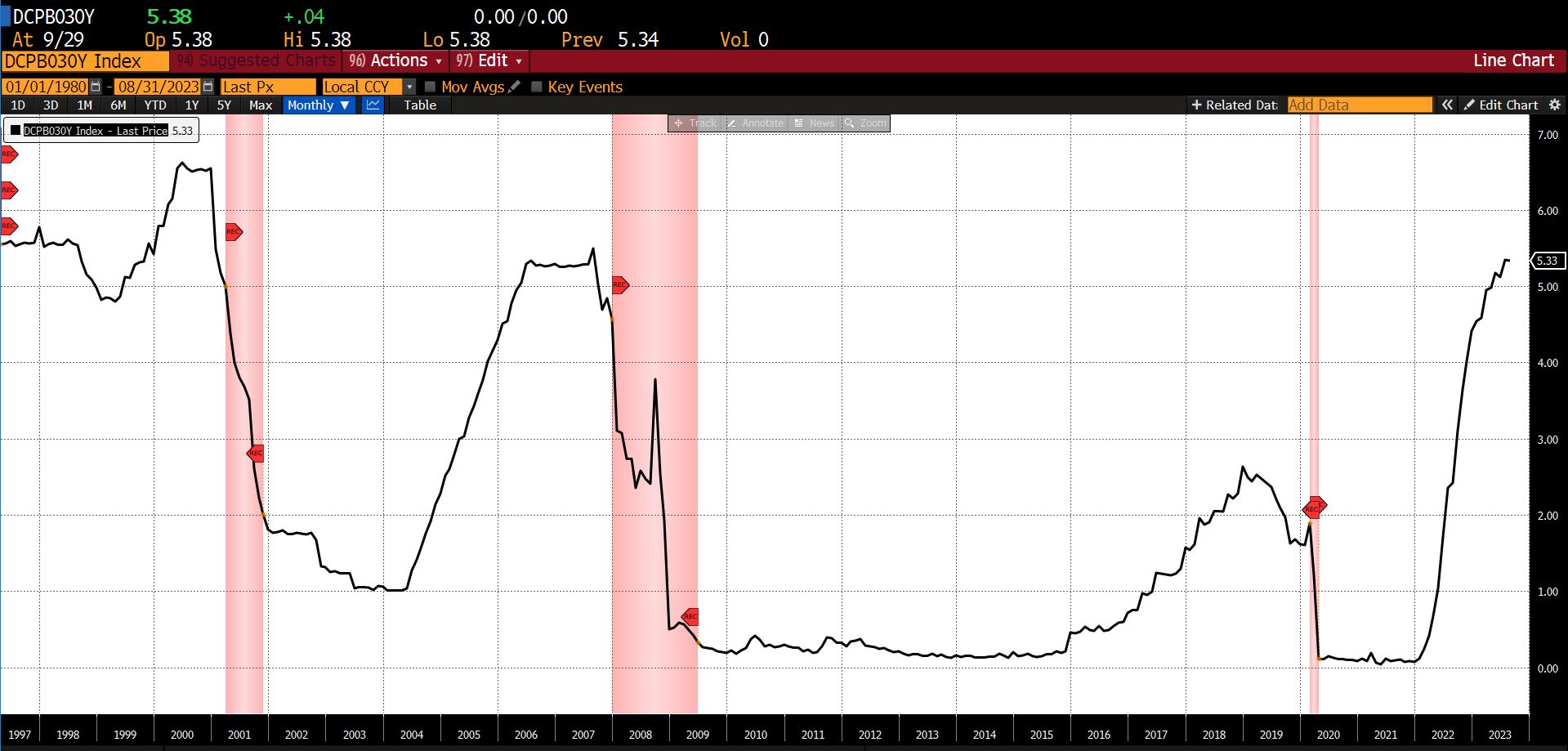 The epicenter of a fourth potential shock is in Detroit, Michigan. The United Auto Worker strike which began on September 15th marks the first time in history that all of the Big Three automakers (General Motors, Ford Motor Company, and Stellantis) have been hit at once. Because automotive supply chains are global and the production of a single automobile requires upward of 15,000 parts from scores of firms of various sizes, the strike may have a substantial impact on employment and economic growth. The 54-day strike of between 9,000 and 10,000 General Motors workers in 1998 resulted in 150,000 jobs lost. Although the structure of the auto industry and production methods have changed in the last quarter century, the expansion of the strikes to 25,000 additional workers in the last week of September is likely to generate knock-on effects. It may be that, seeing the vulnerable state of the economy, union officials think the current administrationโs worrisome polling is likely to prompt intervention on their behalf.ย