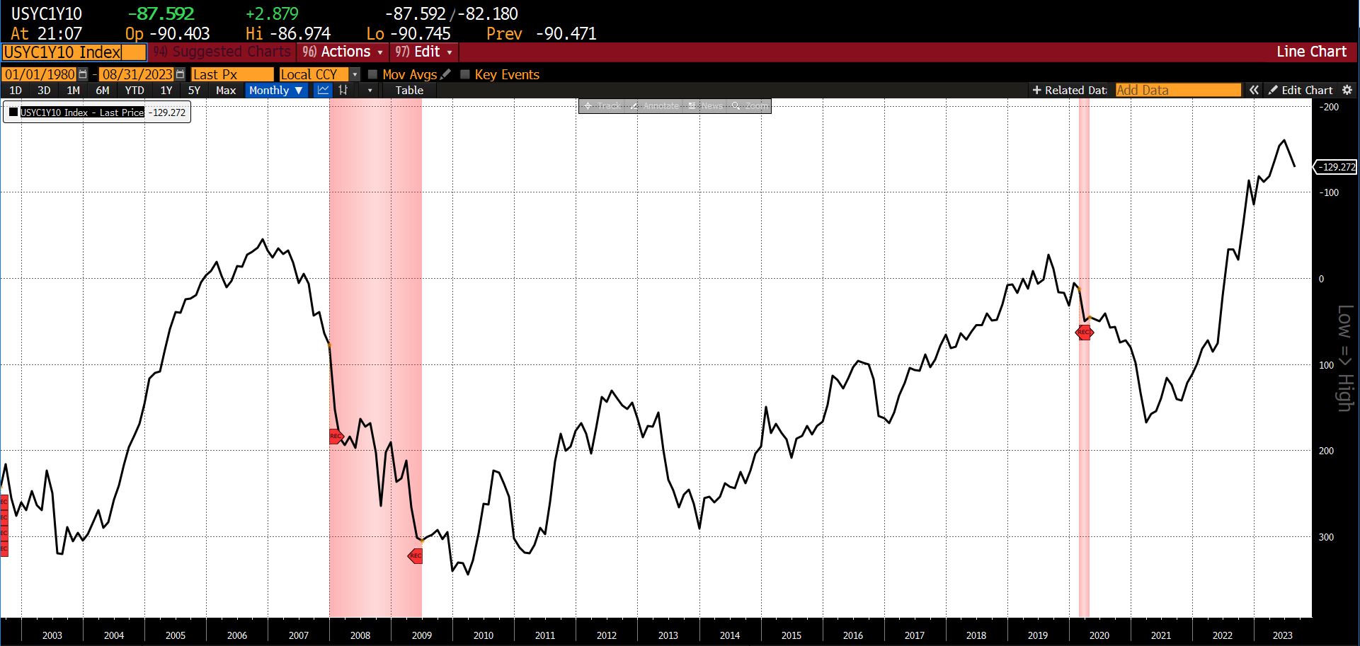 (All charts and data sourced via Bloomberg Finance, LP)