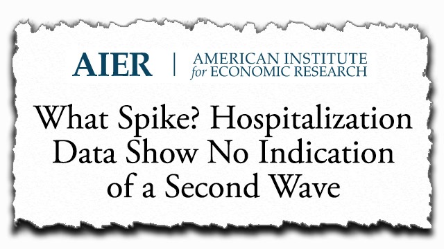 Okay. So letโs look at some contradictory stories. American Institute for Economic Research: โWhat Spike? Hospitalization Data Show No Indication of a Second Wave.โ