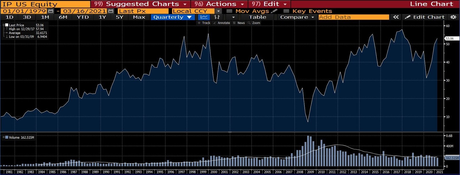 International Paper Company (scores of acquisitions and restructurings between 1986 and 2012)