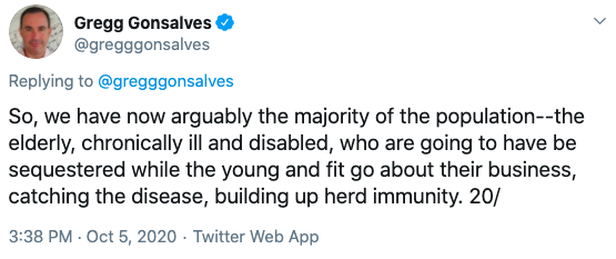A pernickety article by the science editor of Wired argues that the Declaration is behind the times and is fighting against lockdowns that have already been lifted. In fact, lockdowns persist in various stages worldwide, in particular in large U.S. cities owing to ‘phased re-openings’ in many places and, worse yet, lockdowns are being reimposed in certain places. A large percentage of American school children are learning remotely. After 7 months of Covid-19 the media’s proclivity to mislead and waver in their coverage is now well-established, as was demonstrated in the The New York Times pendulum swing from “Here’s How to Crush the Virus Until Vaccines Arrive,” to “A Vaccine That Stops Covid-19 Won’t Be Enough,” later that month. The only consistent position perpetuated by the media is the certainty of inevitable doom and every suggestion of fault or flaw pointing directly to the White House.